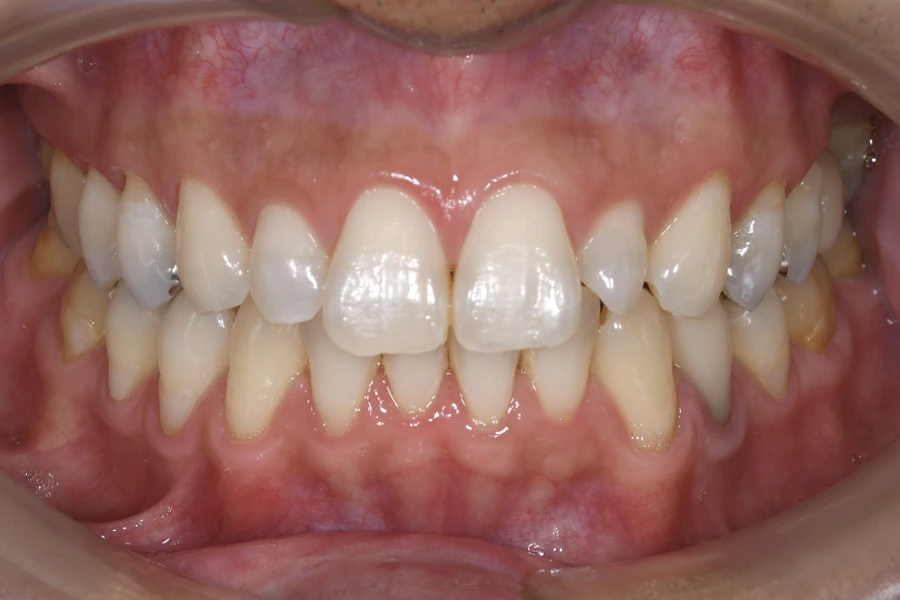 その後「上の前歯の形を変えたい」と希望があり、セラミック治療を実施しました。