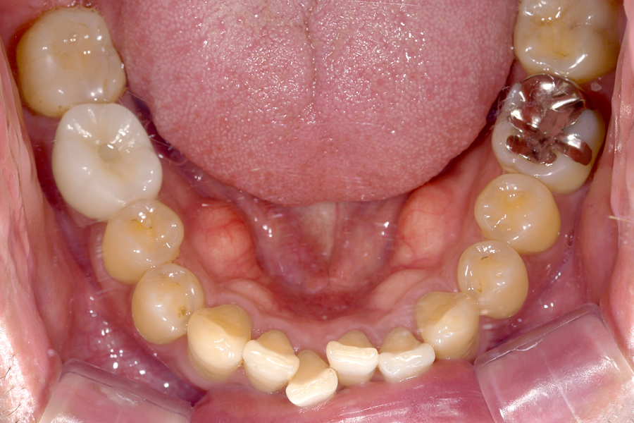 右下臼歯部の歯根破折によって失った臼歯部に代わって、顎の骨にインプラントを埋入し、機能面や審美面の回復を行いました。