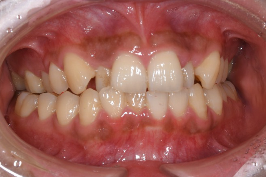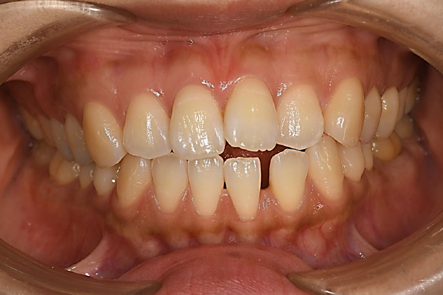歯と歯の間に隙間をつくることにより、歯列弓を広げながら治療を行いました。